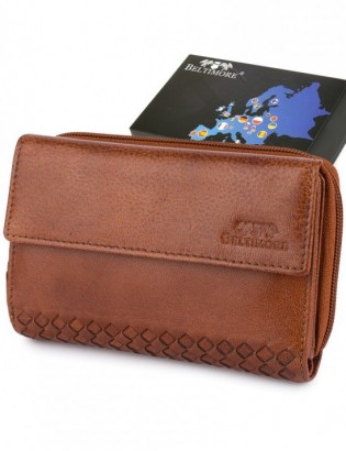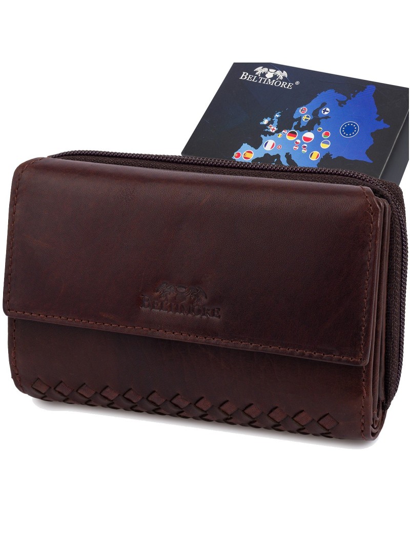 Portfel Damski Skórzany Poziomy Vintage Plecionka ciemny brąz Beltimore Q62