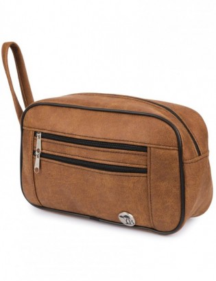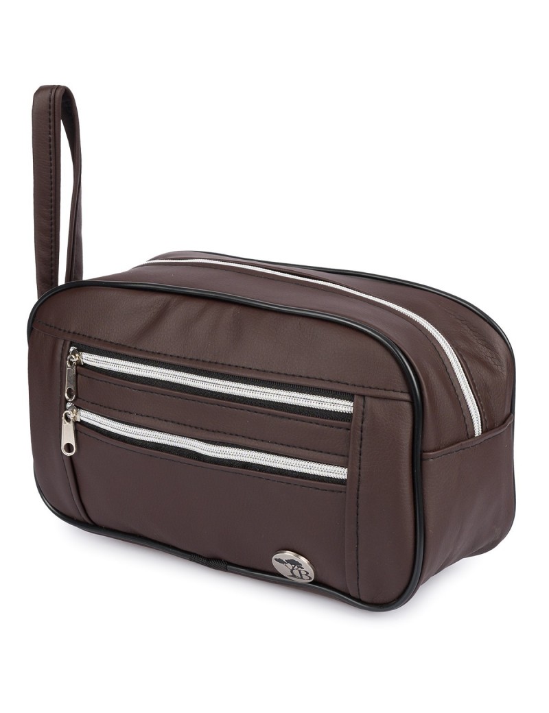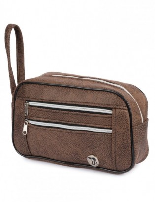 Kosmetyczna brązowa podróżna saszetka elegancka uniseks gładka Beltimore R25
