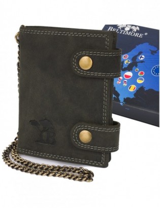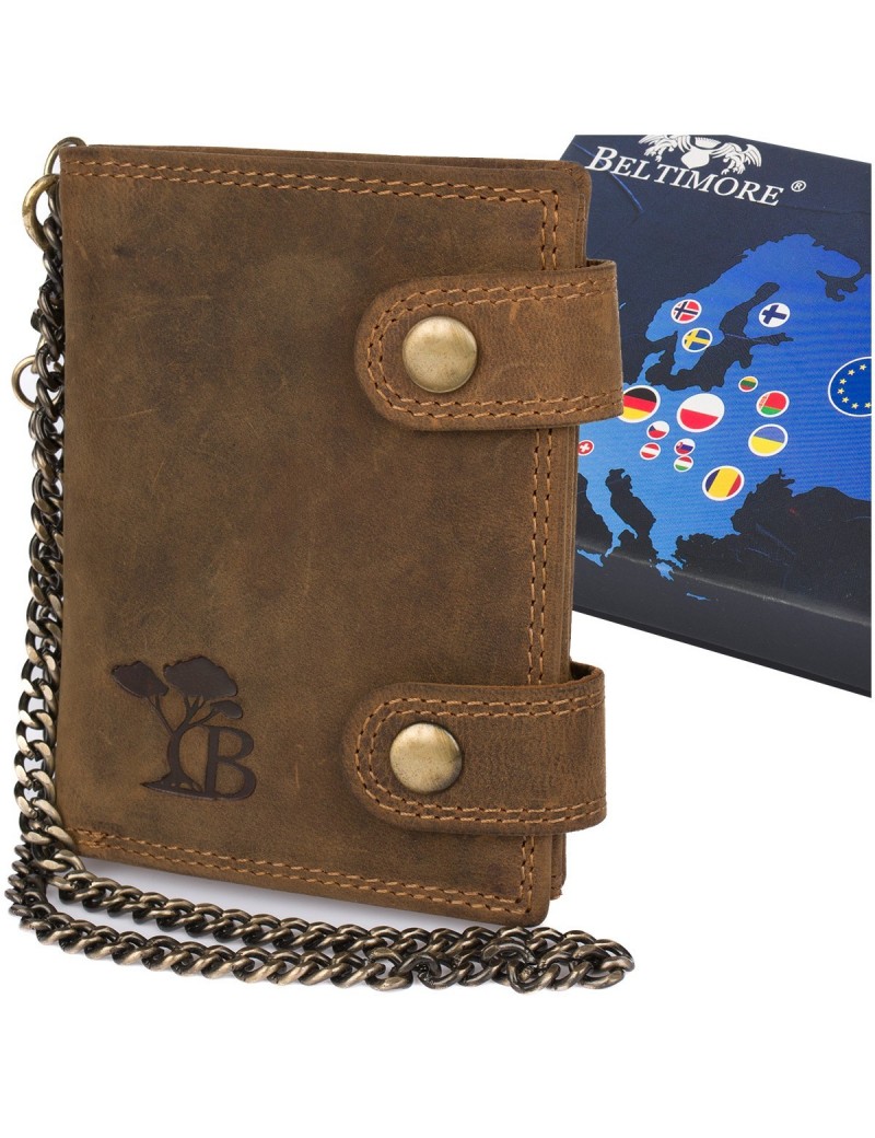 Męski portfel skórzany brązowy nubuk skóra z łańcuchem Beltimore R78