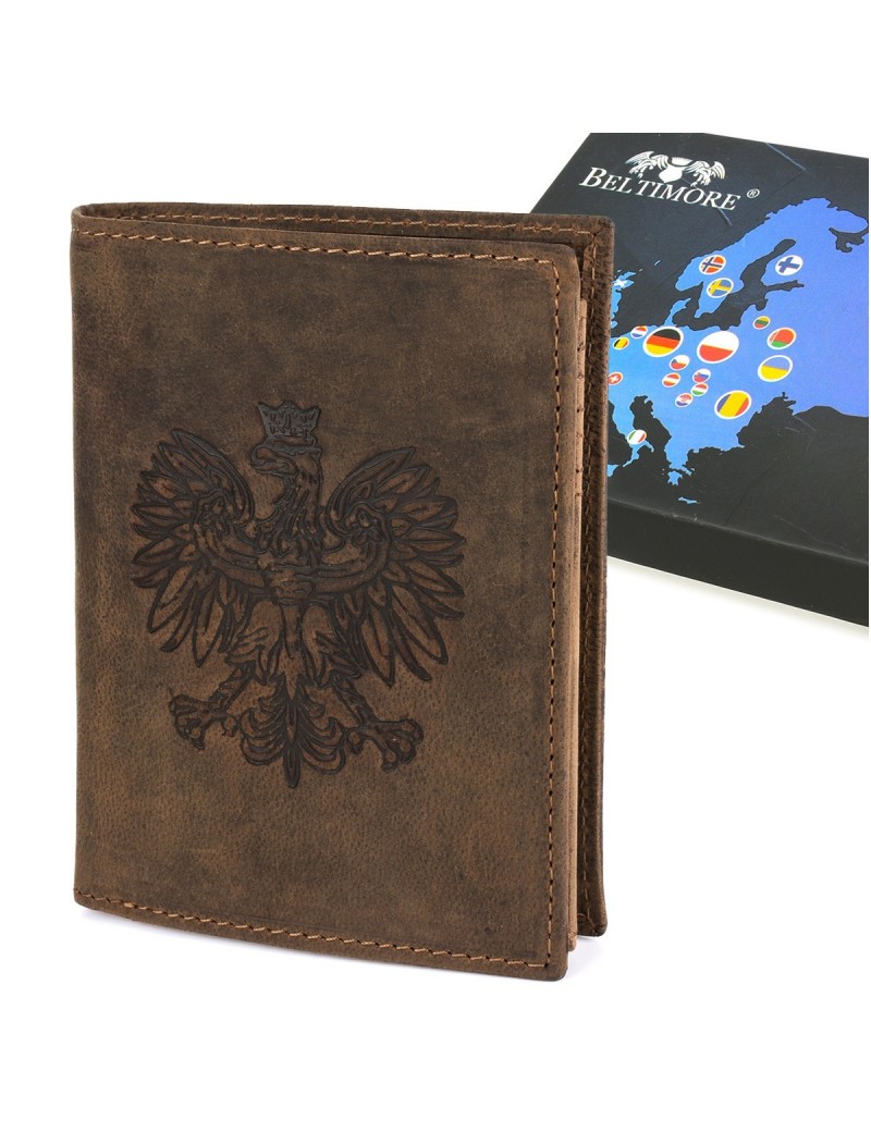 Portfel skórzany męski brązowy nubuk skóra Godło Polski Orzeł RFiD Beltimore R88