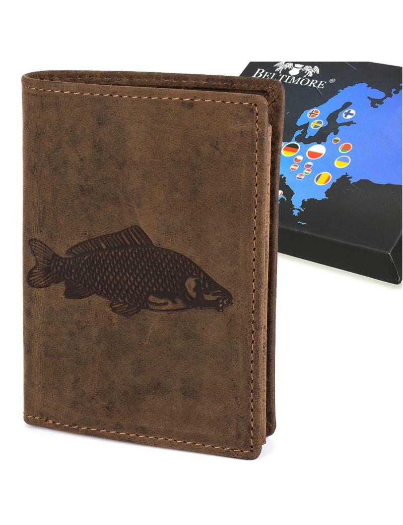 Portfel skórzany męski brązowy nubuk skóra RFiD Ryba Beltimore R91