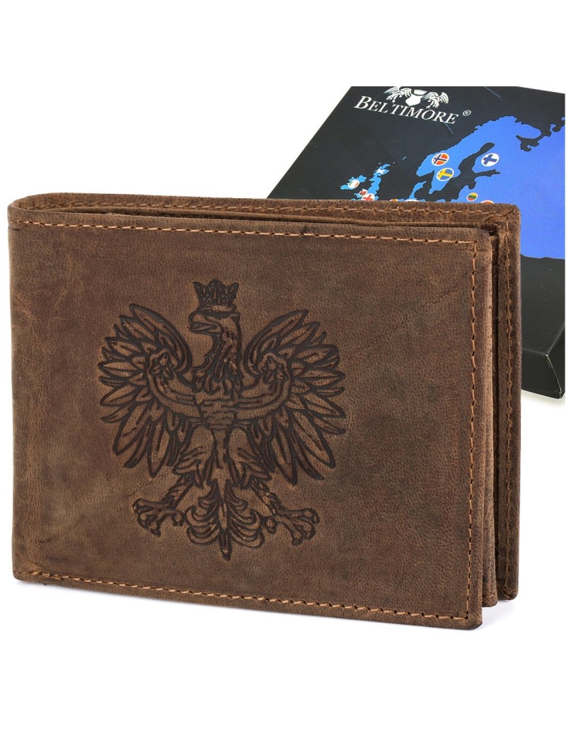 Portfel skórzany męski brązowy nubuk poziomy skóra Godło Polski Orzeł RFiD Beltimore R92