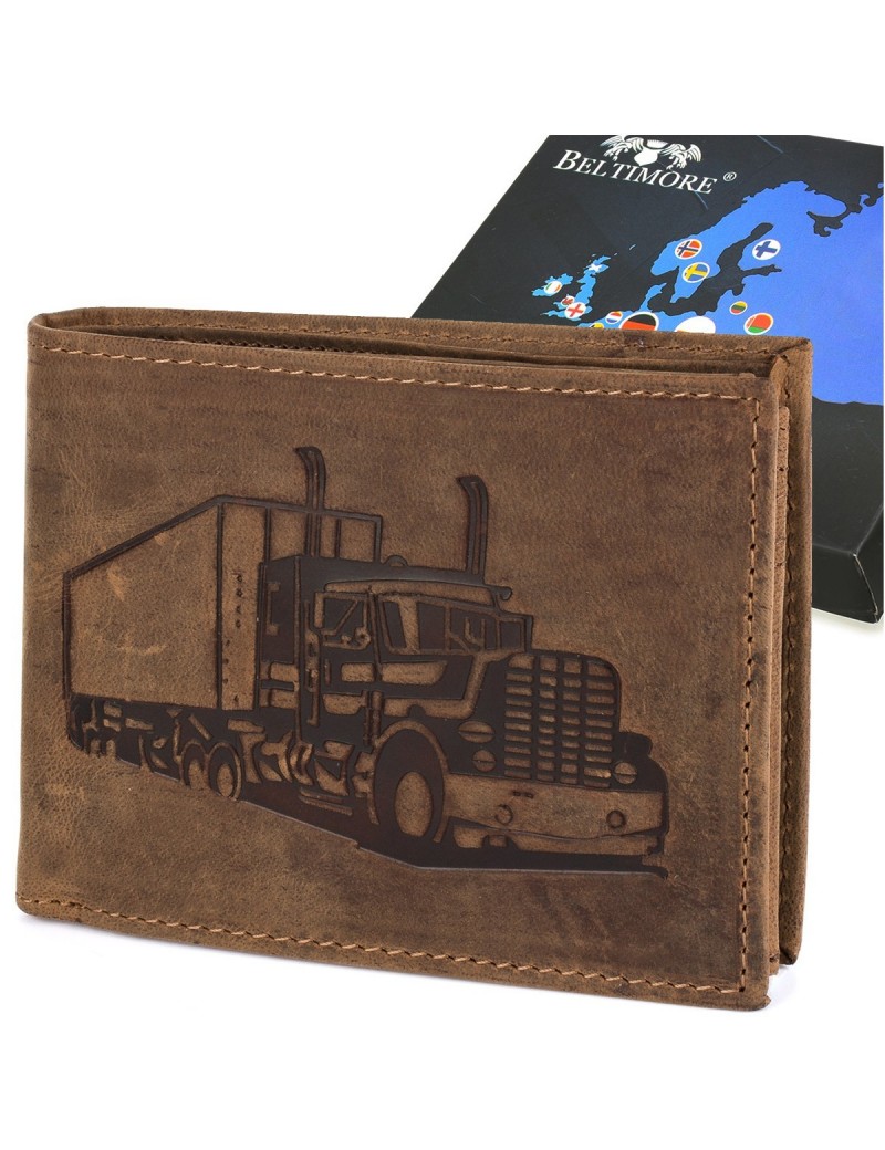 Portfel skórzany męski brązowy nubuk poziomy skóra ciężarówka RFiD Beltimore R93