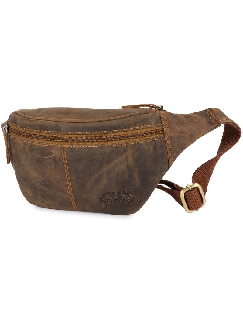 Saszetka nerka skórzana biodrówka brąz nubuk Beltimore S10