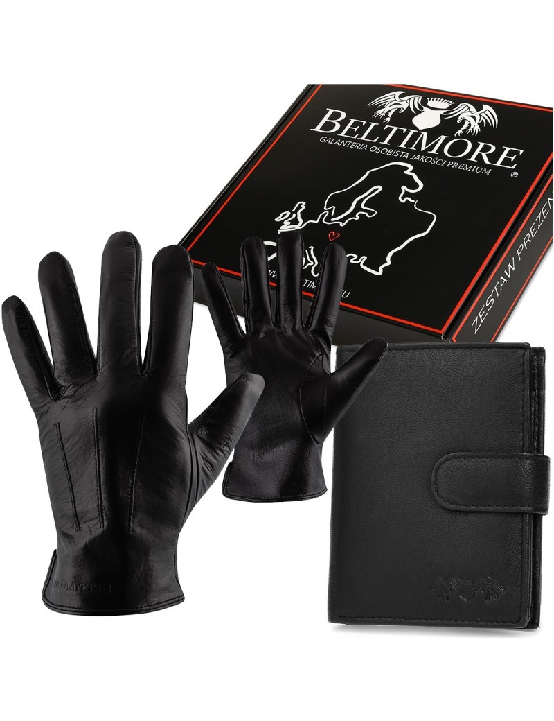 Zestaw męski skórzany portfel pionowy rękawiczki czarne Beltimore T82