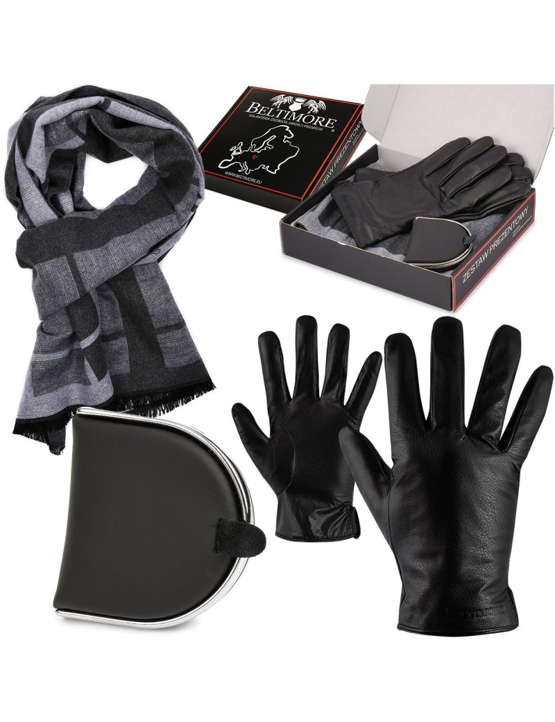 Zestaw męski skórzany Beltimore portfel szalik rękawiczki U80