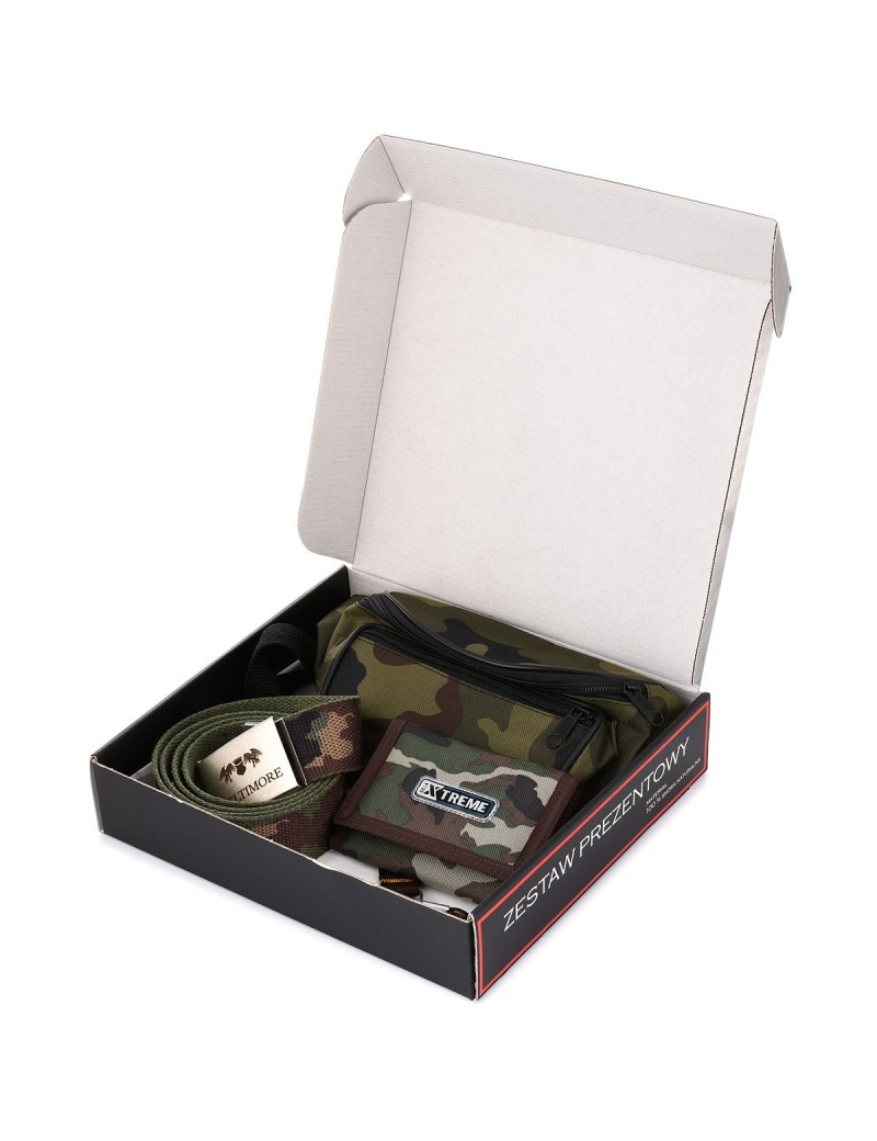 Zestaw męski portfel pasek saszetka moro Beltimore U97