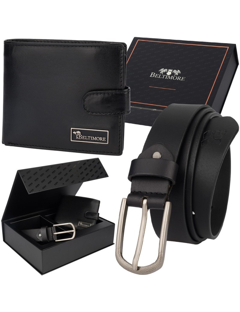 Zestaw prezentowy męski skórzany pasek portfel pudełko premium czarny Beltimore Z27